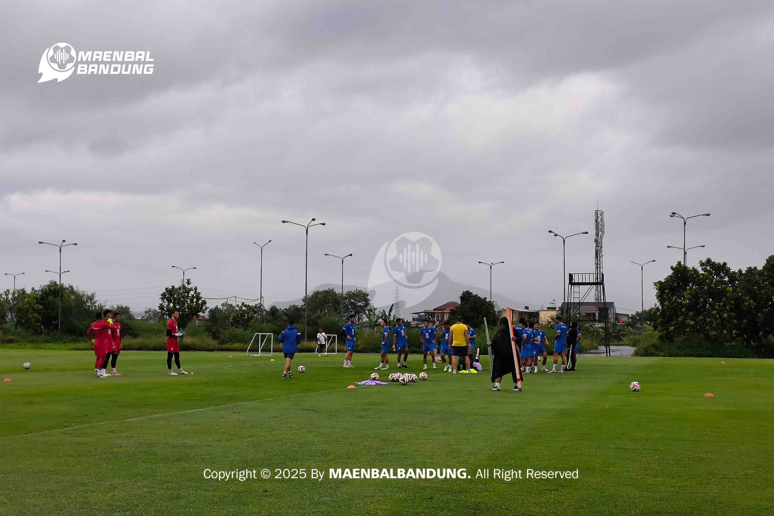 MBCOM – Persib Bandung kembali menggelar sesi latihan pada Selasa, 11 November 2025 di Lapangan Pendamping Stadion Gelora Bandung Lautan Api (GBLA) Kota Bandung. Di tengah guyuran hujan, para pemain menjalani sesi latihan.